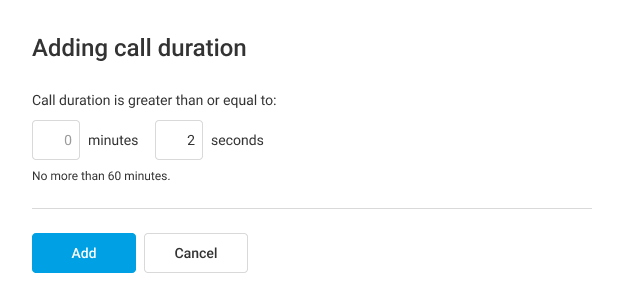 In the window that opens specify the required call duration (from 1 second to 60 minutes) and click Add.