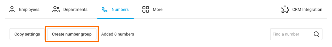 1. Go to the Settings section, the Numbers tab. Click the Create number group button.