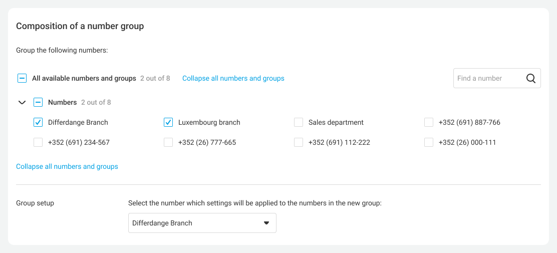 3. Select the number the settings of which you want to apply to all numbers in the created group.