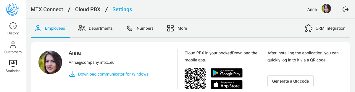 The possibilities of the Cloud PBX personal account do not depend on the access level. Everything described below is set up the same for administrators, users and restricted users.