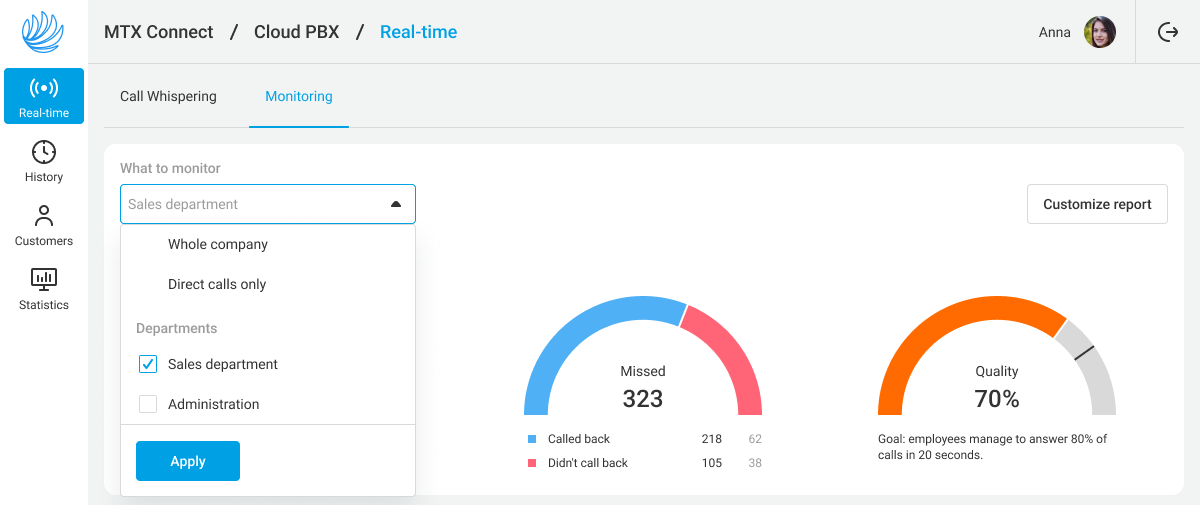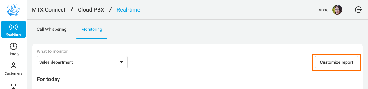 Access to monitoring depends on the level of rights in Cloud PBX: