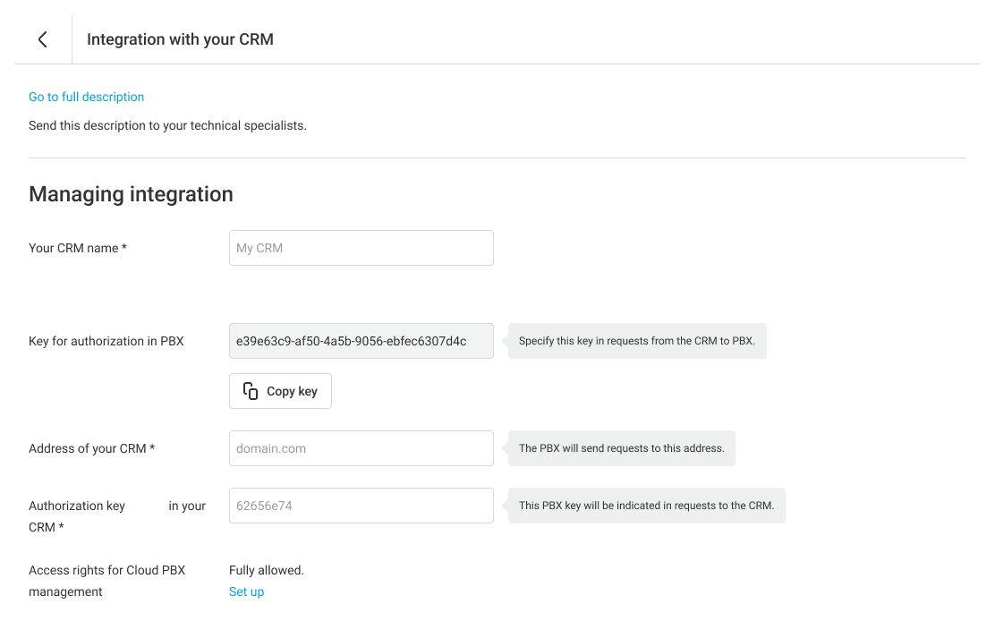 If your CRM is not listed among the available integrations, you can request our specialist specifying the desired CRM. We will update you on the estimated integration timeline.