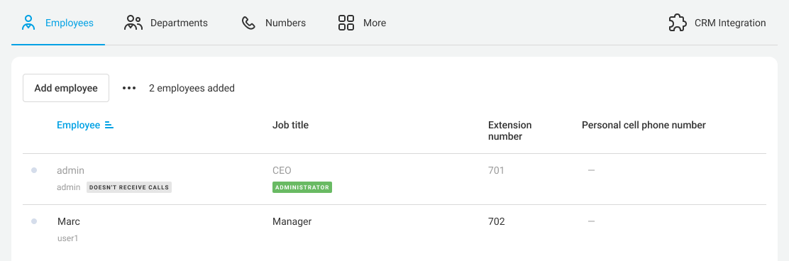 - if the call was answered by Employee 2, it will be displayed as a call to Employee 2;