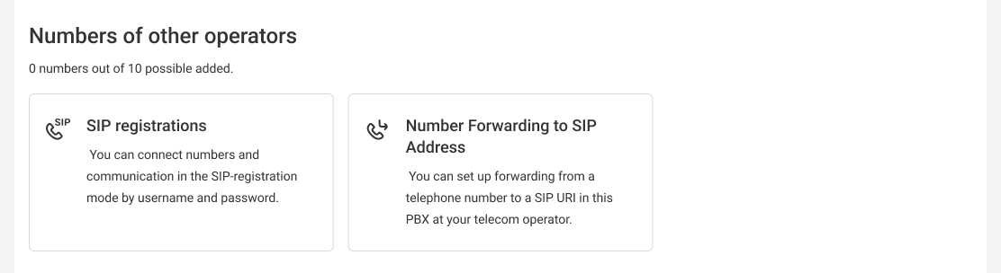 If you have a number from another operator and you're not ready to give it up, you can connect it to Cloud PBX. Let's discuss the connection options.