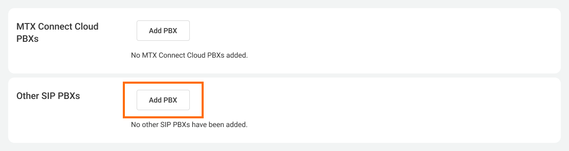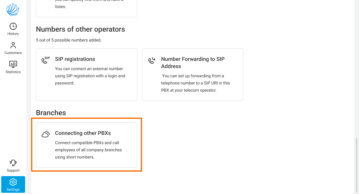 1. Go to the More section in the settings of your Cloud PBX. At the bottom of the page, find the Connecting Other PBXs section.