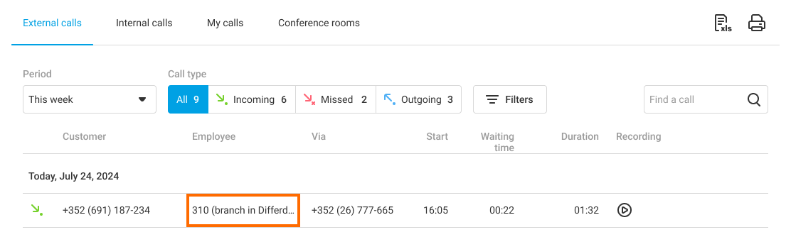 If your company has its own PBX, you can integrate it into the unified numbering plan of Cloud PBX. Employees from different branches will be able to make free calls and transfer calls to each other using extension numbers. These calls will be recorded and displayed in the History section.